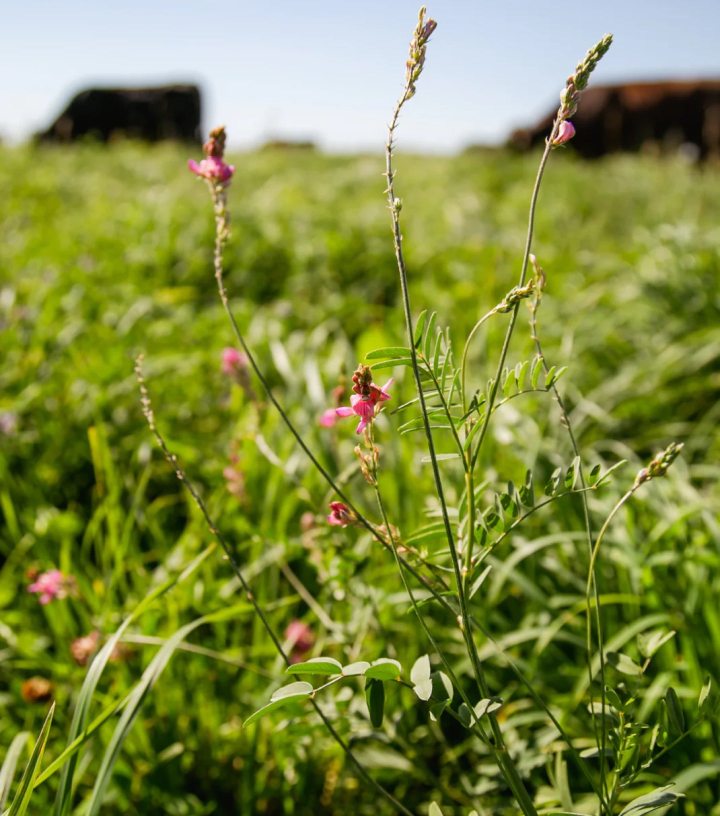 Our pastures contain many species of grasses and legumes that work together to create a nutritious feed source for our cattle. Legumes like clover and vetch have nodes on their roots which attract special microbes. These microbes are capable of converting nitrogen from the air into a plant usable form stored in the soil. Free fertilizer! Many grass species are also useful at storing other important nutrients like phosphorous. Plants can then share these nutrients with each other with the help of mycorrizal fungi.